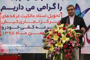 حجه الاسلام و المسلمین حسن زاده ، امام جمعه جزیره کیش نیز با ابراز خشنودی از حسن انتخاب روز پیروزی انقلاب اسلامی برای برگزاری این مراسم گفت : تصمیمات بزرگ را مردان بزرگ می گیرند ، شاید هر کسی قدرت و جسارت تصمیم گیری های مهم را نداشته باشد و با اتفاق امروز ، فکر سرمایه گذاران حداقل کمی راحت شد. سرمایه گذاران نباید سرمایه خود را به جزیره بیاورند و دغدغه سند مالکیت داشته باشند. وی با ابراز رضایت از تصمیم مسئولان برای عدم صدور مجوز ساخت مراکز تجاری ، بر تلاش برای توسعه متوازن در جزیره کیش تاکید کرد.