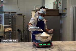 هدایتی نژاد افزود : مرحله تهیه خمیر تا مرحله پخت حداقل ۲۰ ساعت طول می کشد که ۱۵ ساعت از آن مرحله استراحت دادن به خمیر در سردخانه است و مراحل فرآوری و پخت نهایی که در فرهای مخصوصی دارای کف سنگی صورت می گیرد که از کشورهای ایتالیا و فرانسه وارد جزیره کرده ایم . وی حداقل زمان بخت نان در این فرها را برای انواع نان متفاوت ذکر کرد و گفت ماندگاری این نمونه نان بسیار بالاست و بدون بیات شدن و کپک زدن حداقل ۱۰ روز قابلیت ماندگاری دارند . وی در ادامه گفت کار تولید خمیرنان ترش با دست و با ظرافت خاص انجام میشود و از آردهای با کیفیت چاودار و آرد جو که با قیمت بسیار بالا نسبت به آردهای معمولی تهیه و وارد جزیره میکنیم تولید میشود و به همین جهت قیمت نان های تهیه شده با خمیر ترش اندکی بالاست .