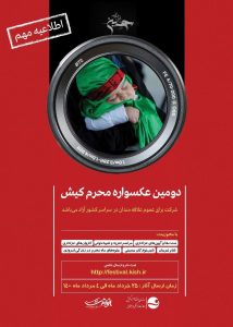 به گزارش پایگاه خبری تحلیلی اندیشه کیش، دومین عکسواره محرم کیش در دو بخش عکس و ادبی توسط معاونت فرهنگی و اجتماعی سازمان منطقه آزاد کیش – مدیریت امور هنری برگزار می شود.