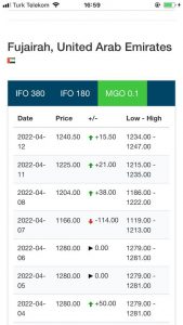 ٣- اگر فرض کنیم همان شناور کروز در هفته یک مرتبه رفت و برگشت از کیش به قطر sealing ( حرکت در دریا ) داشته باشد حداقل ١۵ متریک تن نفتگاز ( MGO ) مصرف می کند که نرخ آن بر اساس نرخ فوب خلیج فارس برای یک متریک تن در حال حاضر ۱۲۴۰٫۵۰ دلار است بنابراین چنانچه شناور چهار مرتبه مسیر کیش به قطر را sealing داشته باشد حدودا ۶٠ متریک تن نفتگاز مصرف می کند که بر إساس نرخ فوب خلیج فارس قیمت آن حدودا ۷۴۴۳۰ دلار می شود.