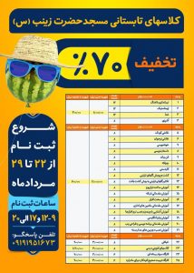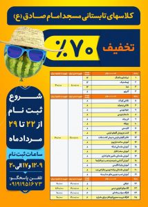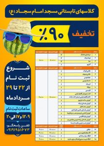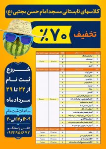 به گزارش پایگاه خبری تحلیلی اندیشه کیش، ترم اول دوره های آموزشی طرح تابستانی مساجد کیش از ۱۸ تیرماه آغاز و ۱۸ مردادماه به اتمام رسید، در این دوره ها، تعداد ١٧٠۴ نفر در ۴٢ رشته (ورزشی، هنری، آموزشی و …) شرکت کردند. مراسم پایان ترم اول، روز پنجشنبه ۲۷ مردادماه برگزار شد . بر اساس این گزارش ثبت نام ترم جدید از ۲۲ تا ۲۹ مردادماه در ٧ مسجد با تخفیف های ثبت نام ٧٠ تا۹٠ درصد انجام خواهد شد و شروع ترم دوم از اول شهریورماه خواهد بود.