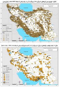 در شکل ۱ پراکنش رومرکزهای زلزلههای ۵ سال اخیر سرزمین ایران نشان داده شده است. در این شکل تمرکز زلزلهها و تغییرات تجمع آن بهوضوح قابل مشاهده است. ایالت لرزه زمینساختی زاگرس و در ادامه از شمال تنگه هرمز به سمت محدوده استان کرمان از یک طرف و نوار لرزهخیز البرز در سوی شمالی از طرف دیگر، زونهای فعال لرزهخیز ایران را تشکیل دادهاند. تعداد ۱۳۳۴۶ رخداد لرزهای با بزرگی ۲٫۵ و بزرگتر از آن در بازه زمانی ۵ سال اخیر ثبت شده است. در شکل ۲ نشان داده شده است که حدود ۹۵درصد از زلزلههای رخداده نشان داده شده در شکل۱، زلزلههای با بزرگی کوچکتر از ۴ است که اثر تخریبی موثری نداشته اما بهنوبه خود معرف فعال بودن گسلهای مسبب هستند که شایان توجه است. بررسی تعداد زلزلههای ۵ سال اخیر ایران به نسبت بزرگی آنها نشان میدهد که سهم عمدهای از آنها مربوط به زلزلههای کوچکتر از ۴ است.