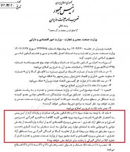 براساس مصوبه هیئت وزیران در خصوص اصلاح آیین نامه اجرایی قانون مقررات صادرات و واردات که اخیراً به تصویب رسیده است، ۴ تبصره به ماده ۵ این آییننامه الحاق شده است.